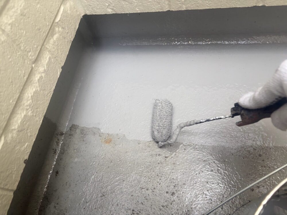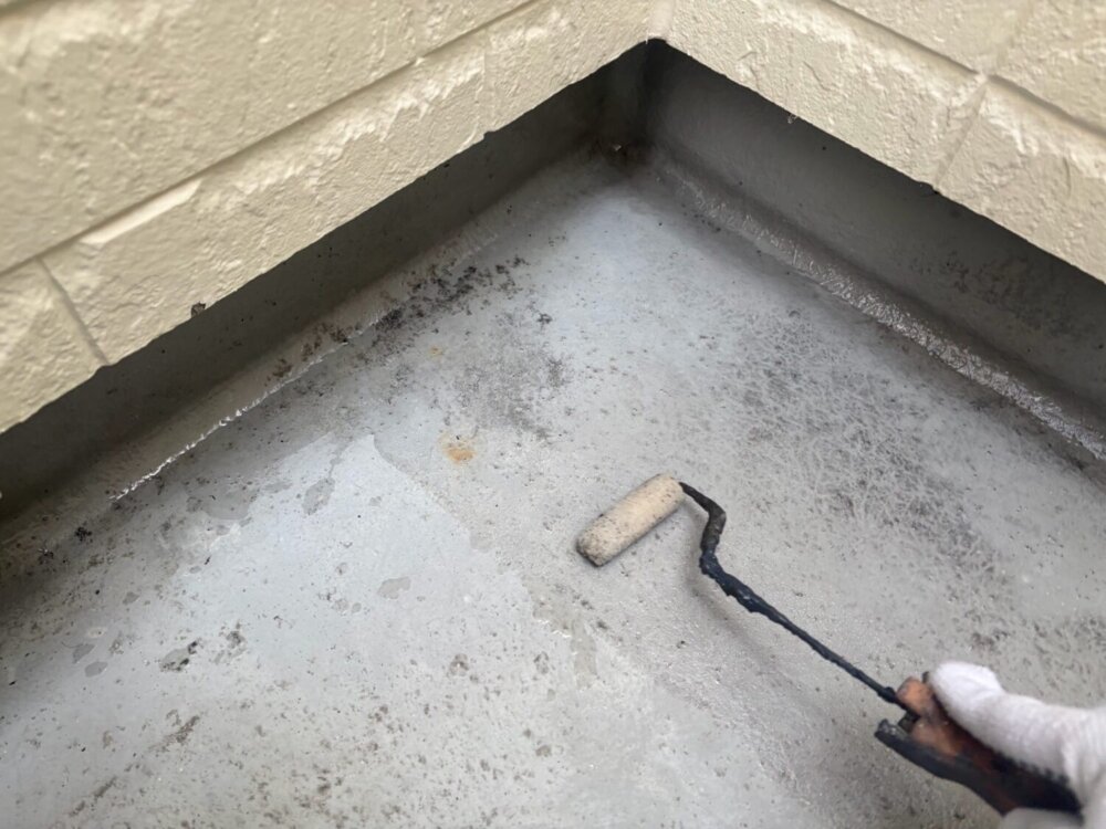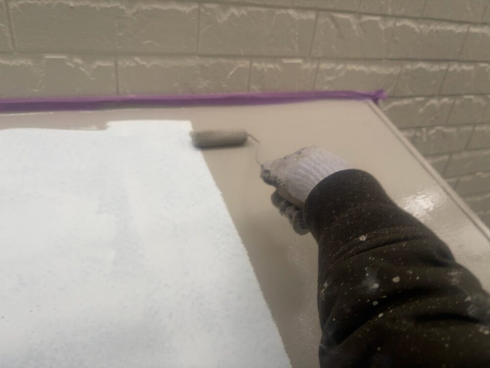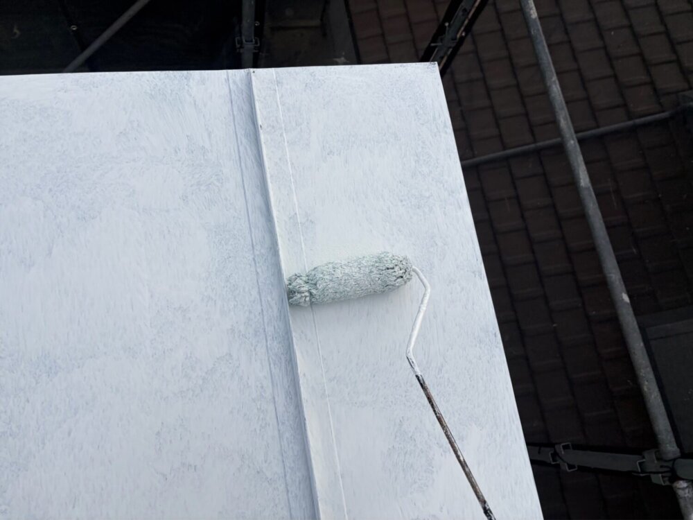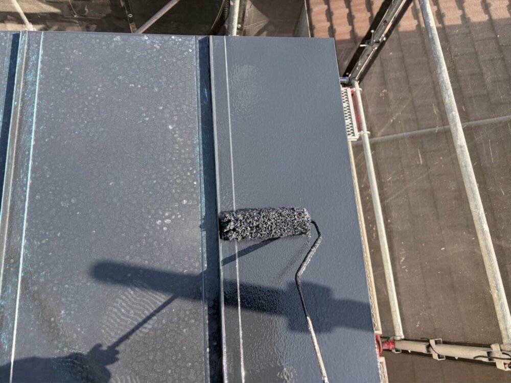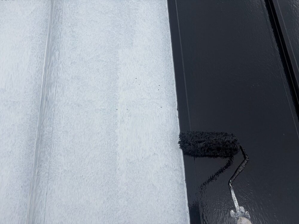 屋根材と塗料との密着性を高める為下塗り材を塗布していきます。 -