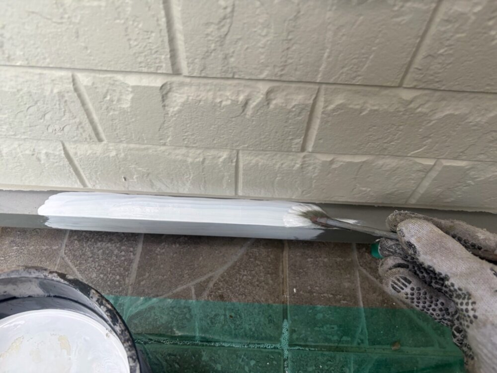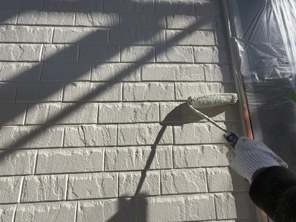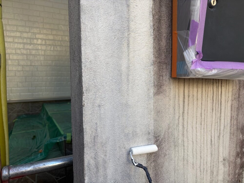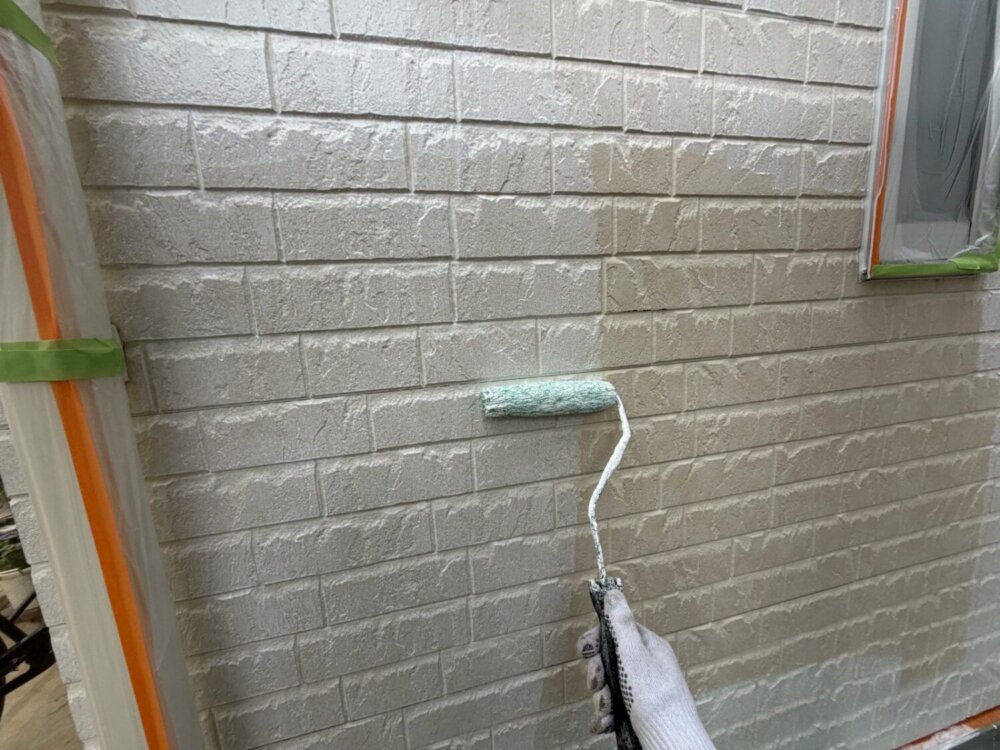 外壁材と塗料との密着性を高める為下塗り材を塗布していきます。 -