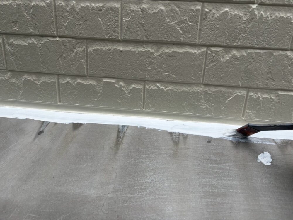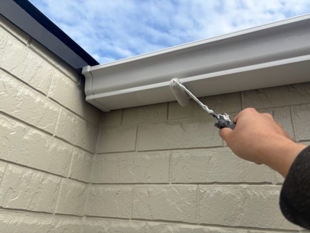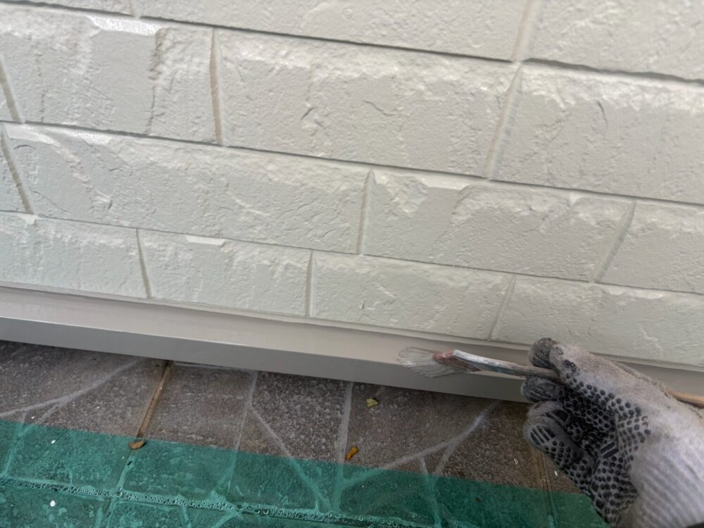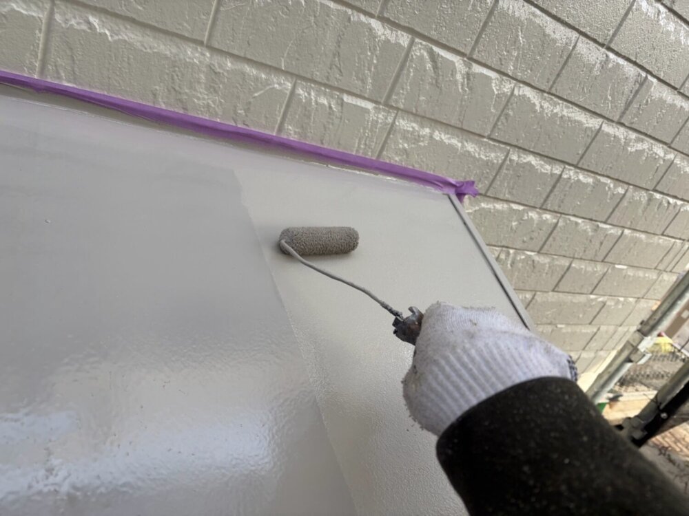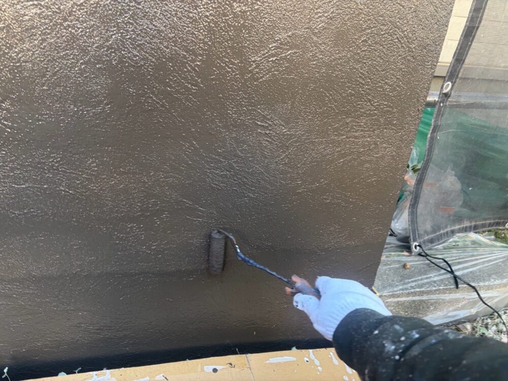 外壁材と塗料との密着性を高める為下塗り材を塗布していきます。 -