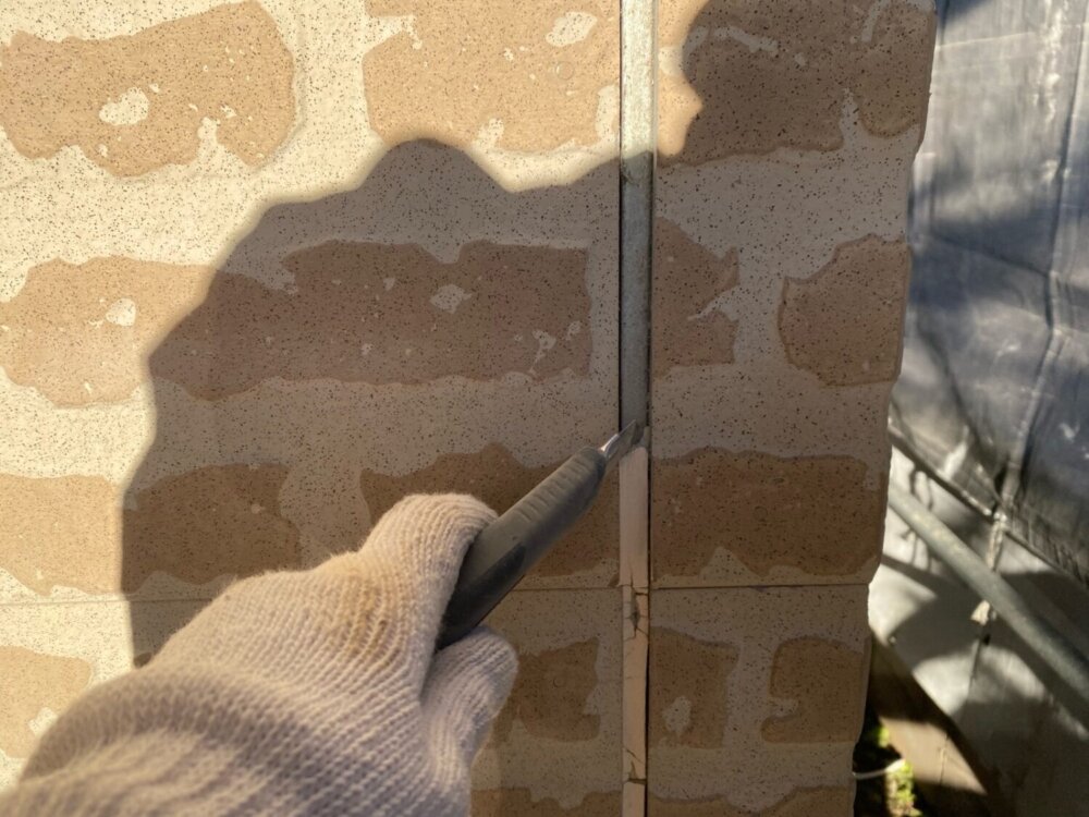 コーキング工事は、古いコーキングを取り除く【撤去】からのスタートとなります。