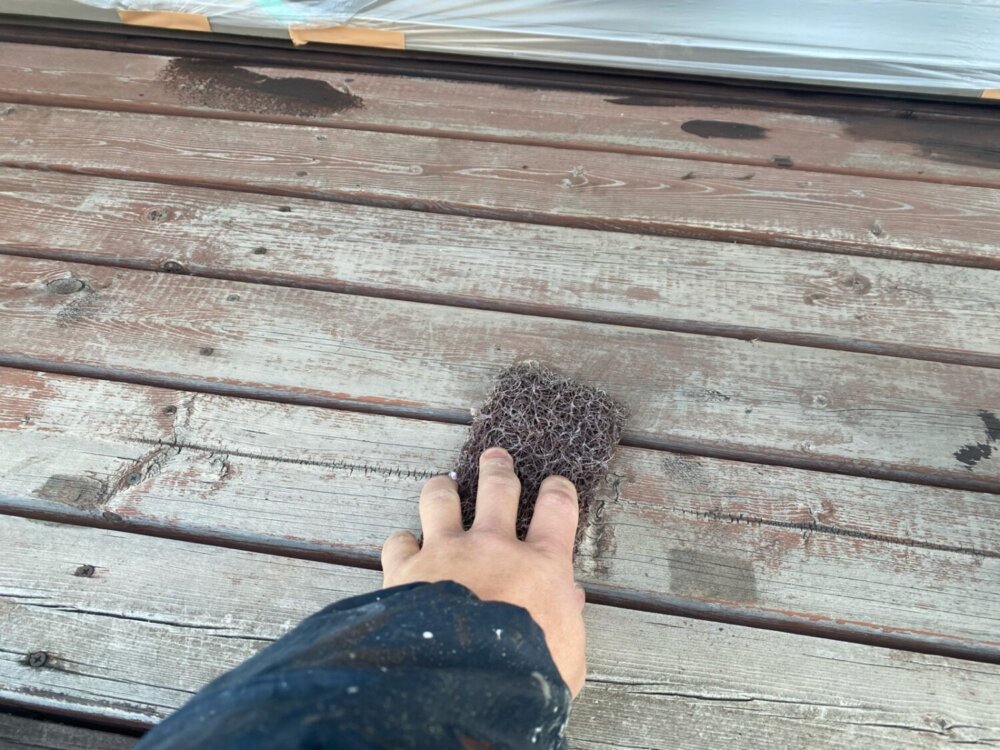 下塗りと上塗りの塗膜を密着させる大事な工程になります。 -