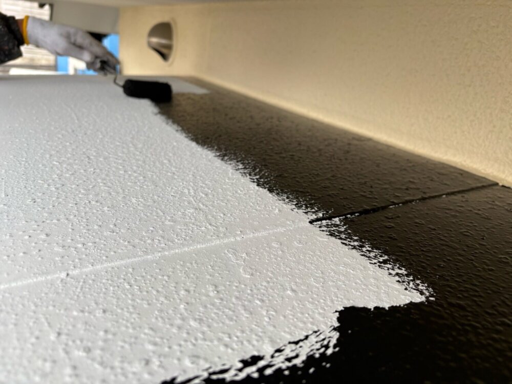 下塗りと上塗りの塗膜を密着させる大事な工程になります。 -