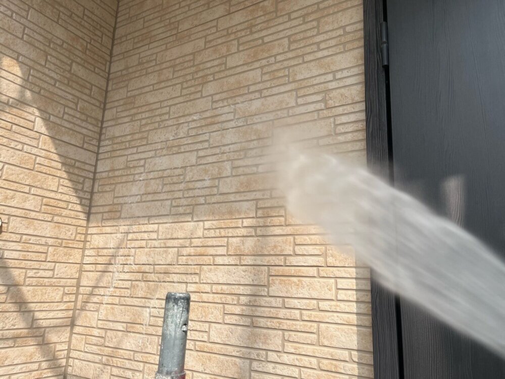 外壁に付着している砂塵、汚れ、苔、藻、カビなどを洗い流し綺麗にする作業になります。