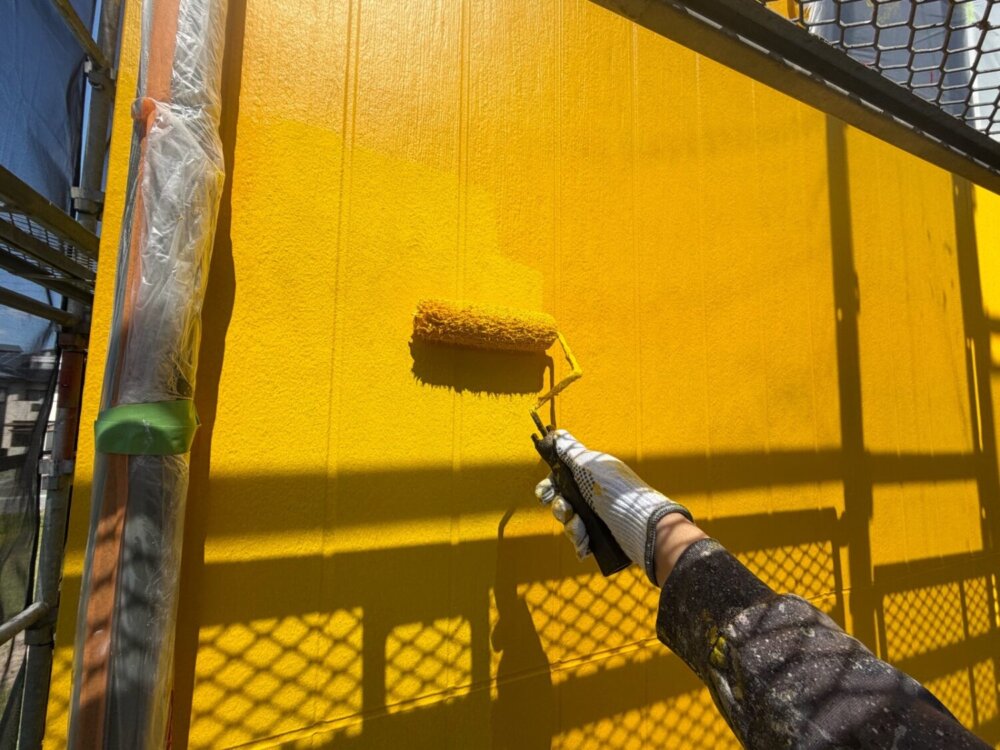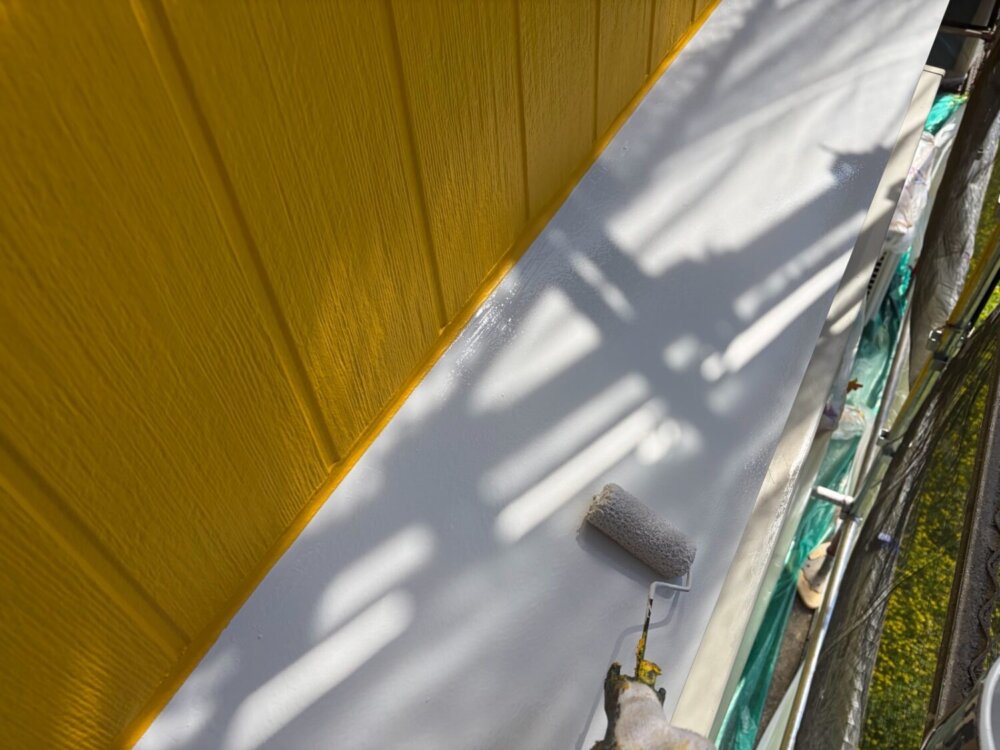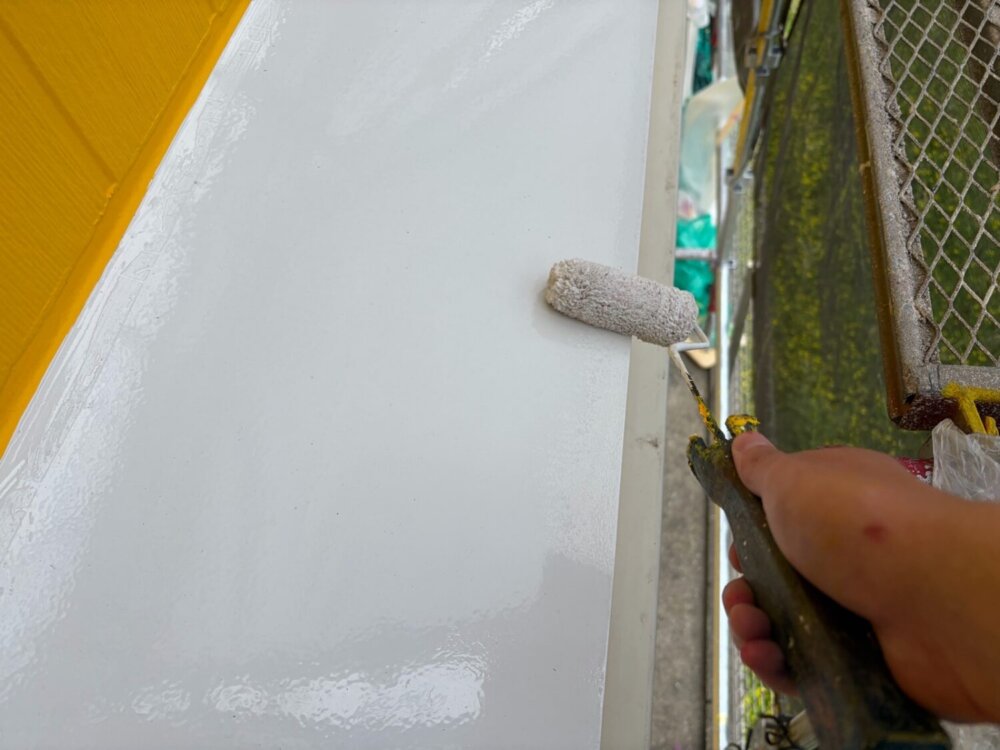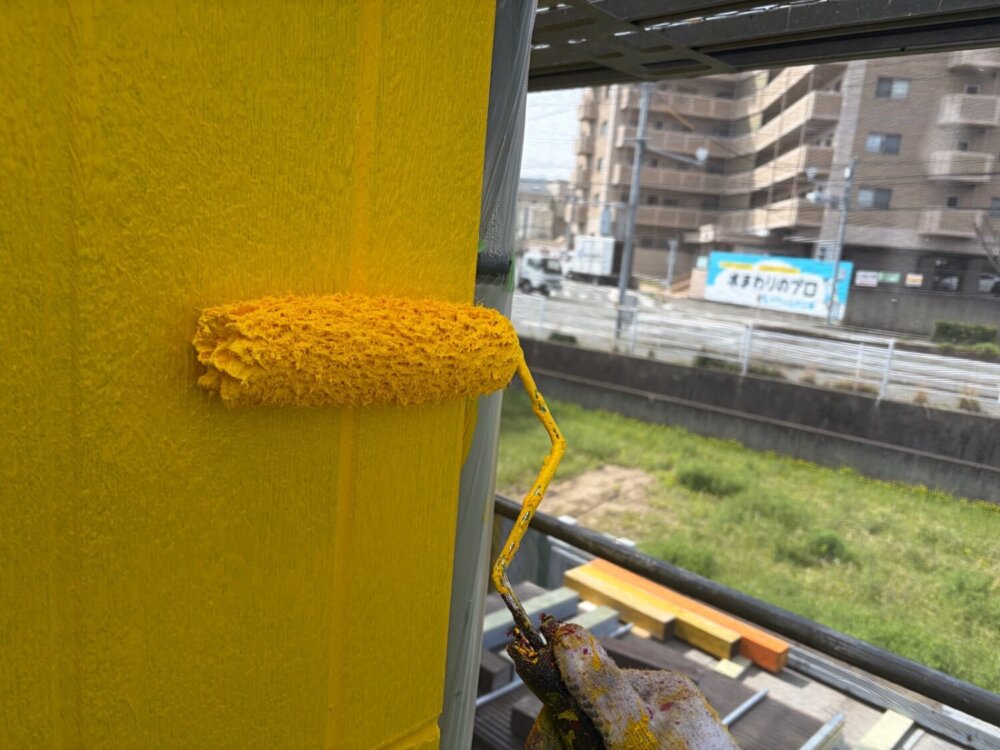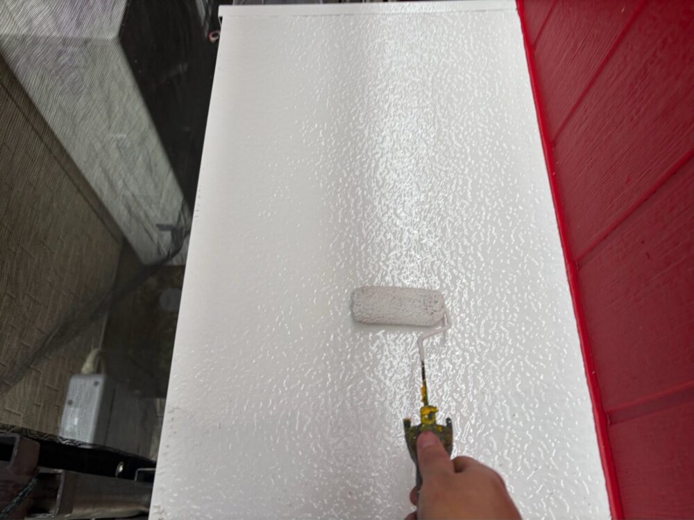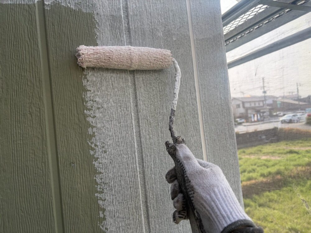 外壁材と塗料との密着性を高める為下塗り材を塗布していきます。 -