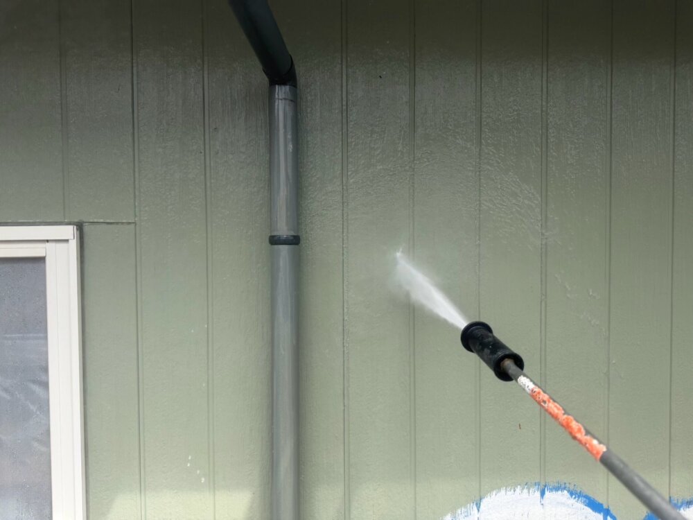 外壁に付着している砂塵、汚れ、苔、藻、カビなどを洗い流し綺麗にする作業になります。 -